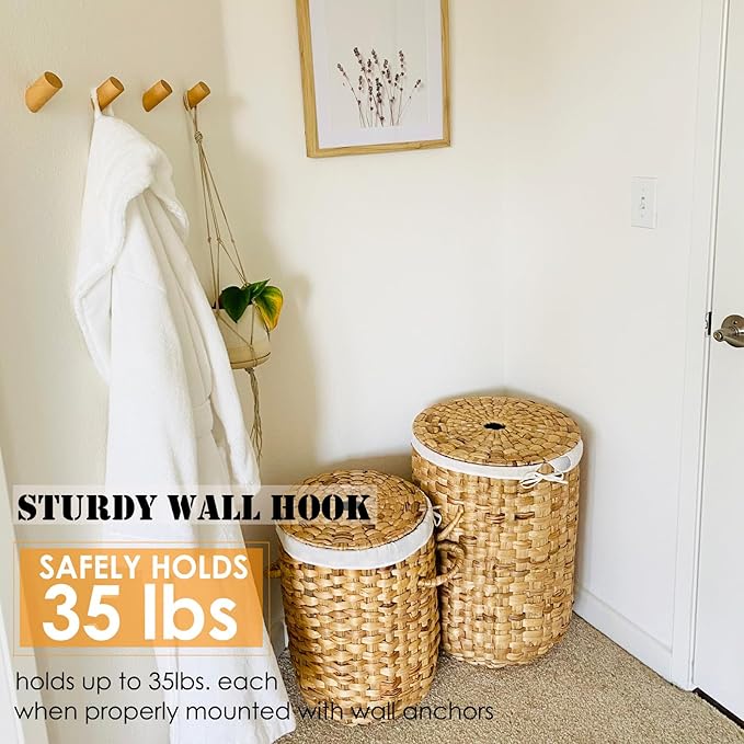 - Sturdy Wall Hook: Solid wood construction with hardware coat rack wall mounted. Helps to keep lots of things hanging. Hold up to 35 lbs. each. Don't worry falling them off