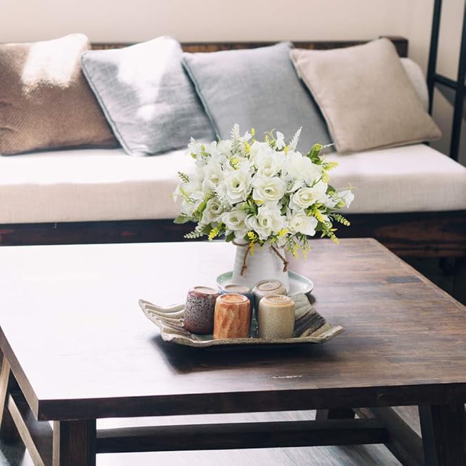 LESING Artificial Flowers with Vase for Table Centerpieces,Fake Silk Gardenia Flower in Vase Decoration for Home Office Party (White)