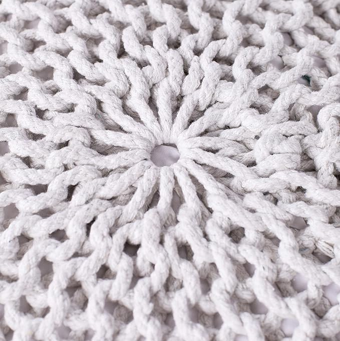 - Boho-Chic Texture: This poofy ottoman is densely woven with 100 % cotton yarn; the boho footstool in our sitting ottoman is an excellent addition if you're looking for accent stools for the living room or as foot rest for the couch.