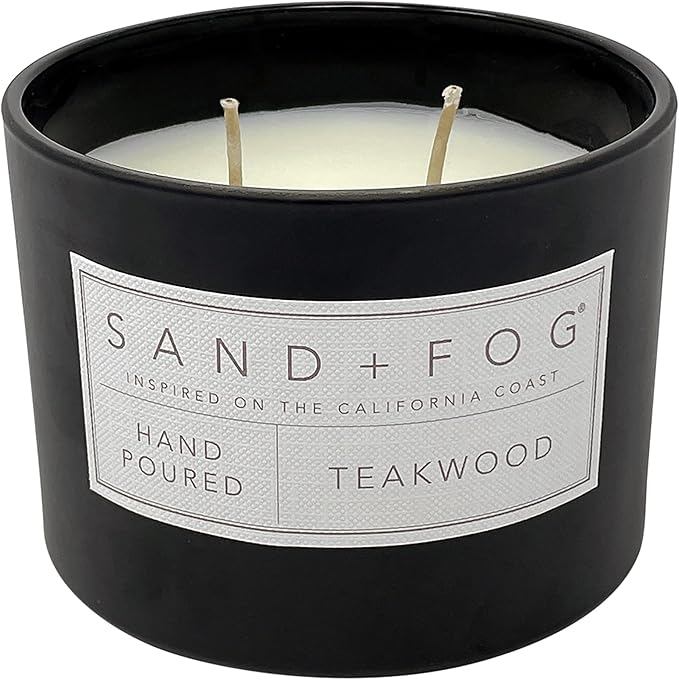 Sand + Fog Scented Candle - Teakwood – Additional Scents and Sizes – 100% Cotton Lead-Free Wick - Luxury Air Freshening Jar Candles - Perfect Home Decor – 12oz