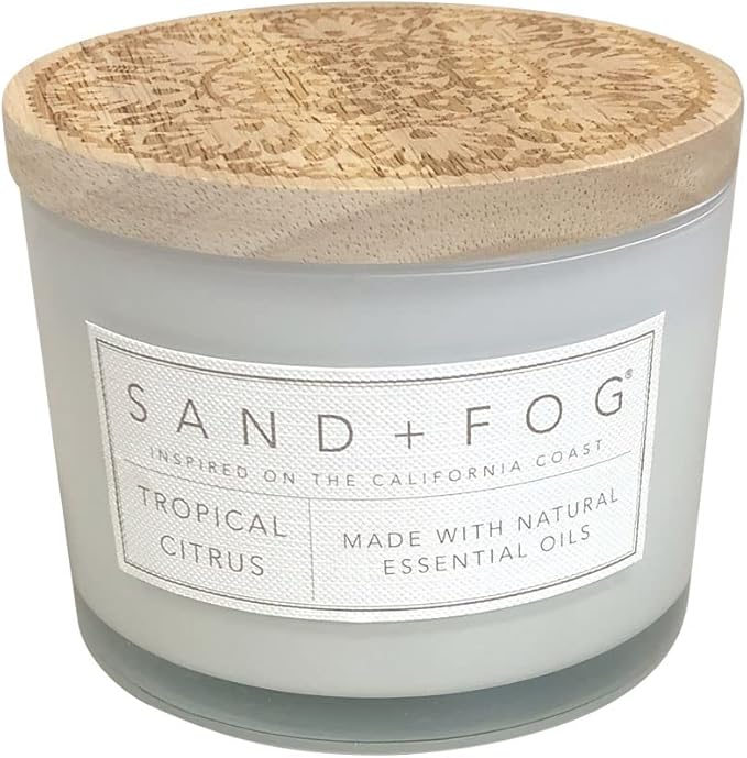 Sand + Fog Scented Candle - Tropical Citrus - Additional Scents and Sizes – 100% Cotton Lead-Free Wick - Luxury Air Freshening Jar Candles - Perfect Home Decor – 12 oz