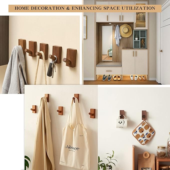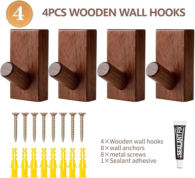 - What you will get: 4 Pack wooden utility hooks come with 8PCS screws, 8PCS drywall anchors, a sealant adhesive, and a manual