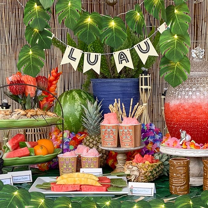 - Widely Application: This tropical artificial plants leaves string light for table decorations, luau table skirt,diner plate decorations, wall decorations, backdrop decorations, art gallery,Party decorations, skirt or cloth decorations,Craft Supplies,Restaurant Decor, Concession Stands,Juice bars,Fast Food Shop.Give you a different sense of visual impression