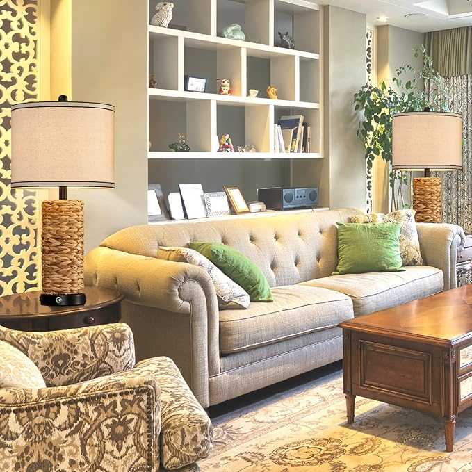 - Eye-caring LED Shade: The rattan lamps for bedroom come with 2 LED bulbs, saving up to 90% of energy. Natural linen beige lampshade softens the light and provides comfortable and natural light, no flicker, no sparkle, it affects preserving eyesight