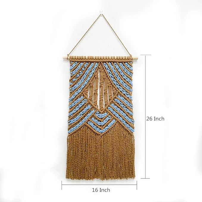 - 【Premium Quality Macrame】: This macrame wall hanging is made of pure cotton cord, without artificial ingredients or chemicals.Unique boho room decor, this meticulously knitted wall hanging macrame with beautiful geometric.