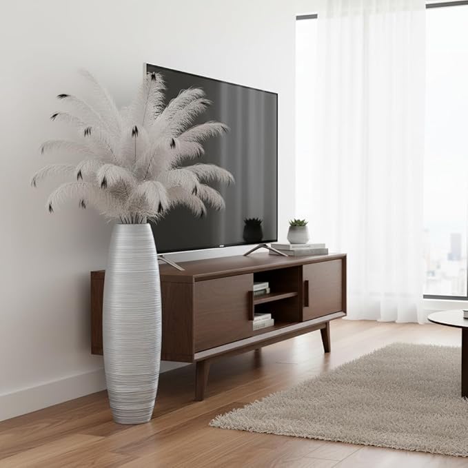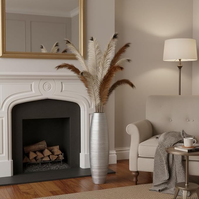 Rocendlor Tall Floor Vase, 27.5 inches (70cm, 2.3FT) Tall Vases Sturdy, Luxury, Textured for Decorative Branches Dried Flowers, Floor Vase for Rustic Living Room, Modern Decor, Resin Silver Vases