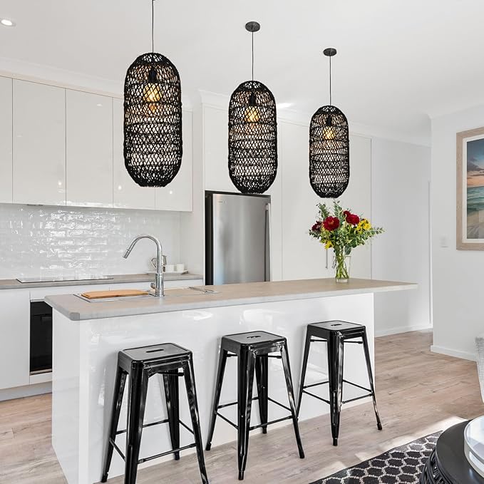 - Widely Application:Farmhouse woven hanging lights perfect for dining room,living room,bedroom,kitchen islands,nursery,cafe,foyer, entrance,small dining table,bar area,reading nook,sitting area,loft,beach villa,farmhouse, warehouse,club,beach plant area,etc.
