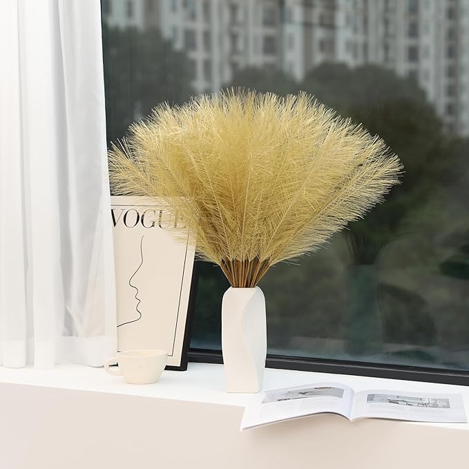 - 【Ideal Quantity and Size】: You will receive 30 pieces of Golden artificial pampas grass, each measuring 24 inches in length. The full and fluffy appearance strikes a perfect balance between elegance and practicality. The tall pampas grass decor adds an eye-catching element to any room while still maintaining a manageable size for versatile placement.