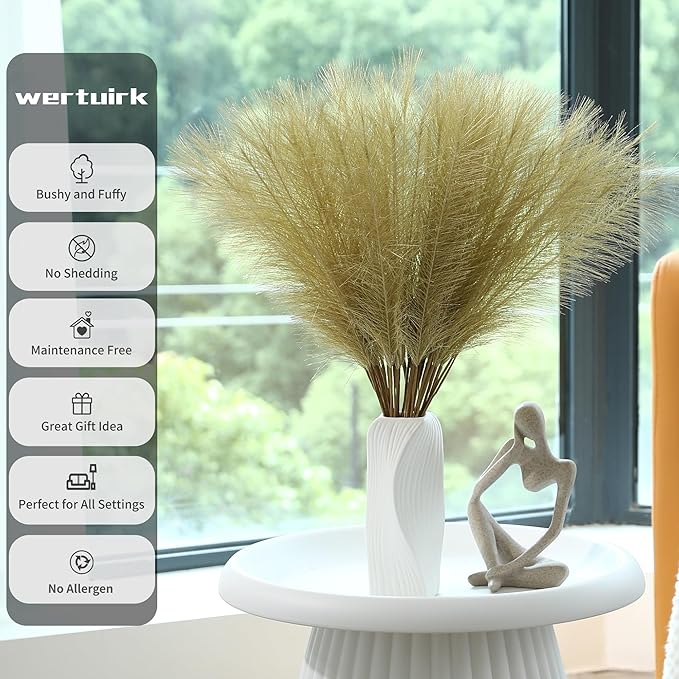 - 【Premium Quality and Durability】: Crafted from high-quality materials, our fake pampas grass offers long-lasting beauty and requires minimal maintenance. Unlike real pampas grass, our artificial alternative won't shed or wilt, ensuring a lasting and hassle-free decorative solution.