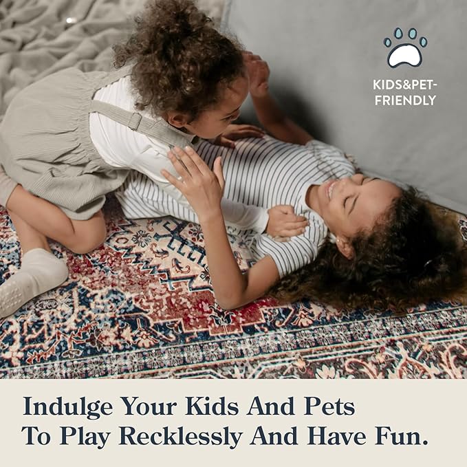 - Ultra Soft and Safe: The vintage rug is soft and good to touch- walking barefoot is like stepping on clouds, keeping the soles of your feet warm and relaxed. The ultra-thin design was easily placed under furniture without creating a tripping hazard