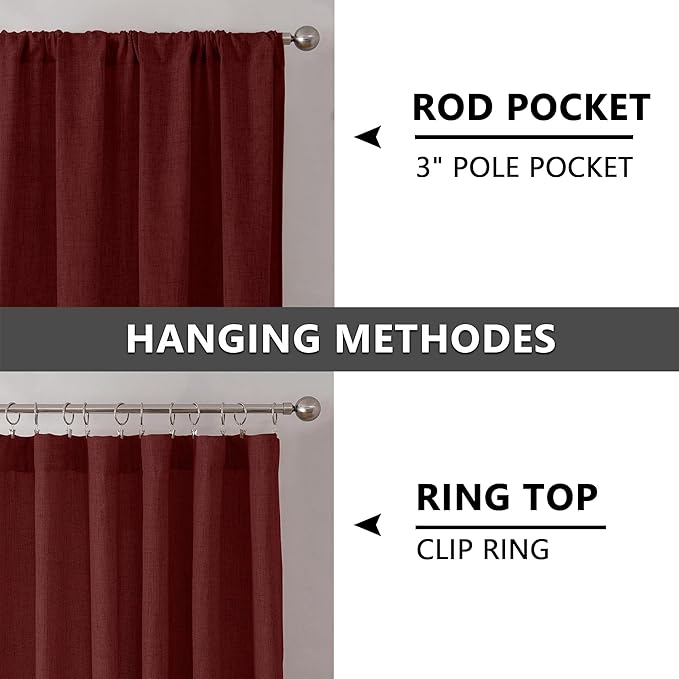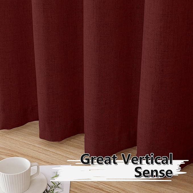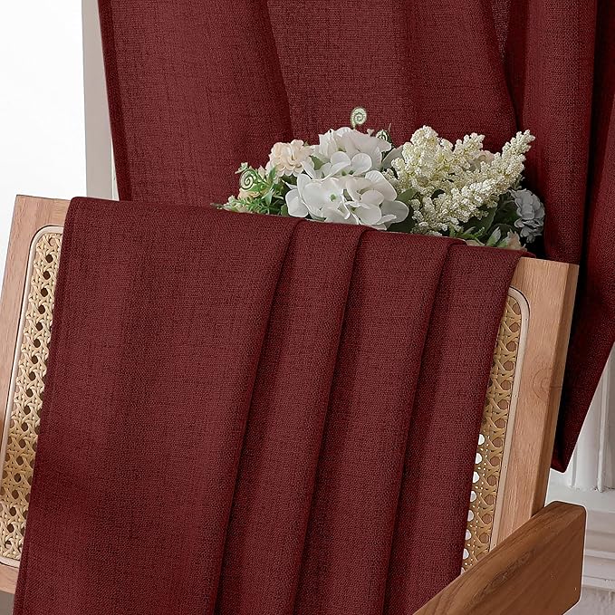 - Rich Linen: The cross-woven design blended with real linen and polyester provides our burgundy red linen curtain a unique subtle pattern compared with conventional plain curtain, which also makes these drapes soft and durable.