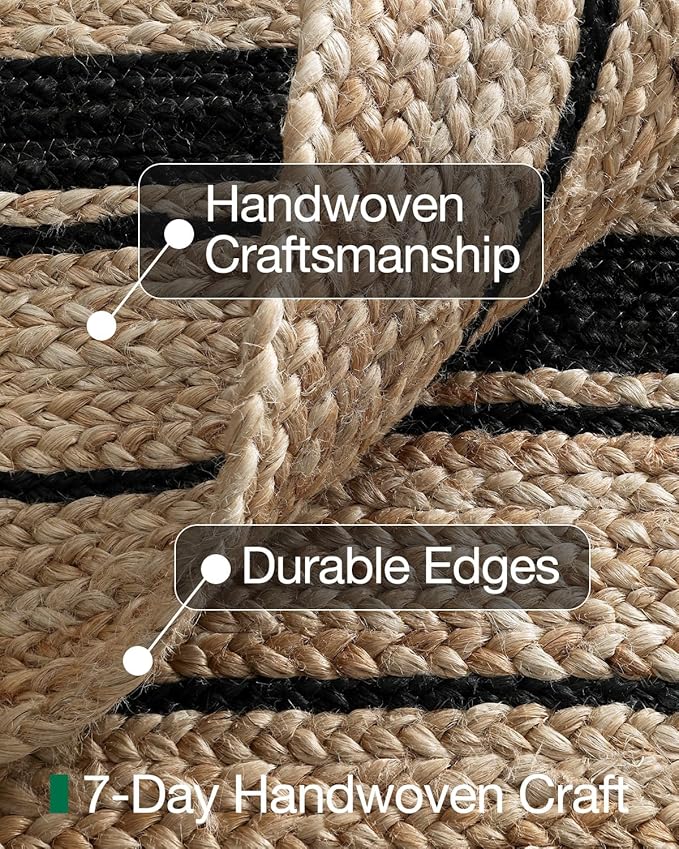 - Natural & Breathable: Made from soft yet durable jute fibers, this area rug promotes air circulation to help prevent moisture buildup underneath. Its breathable structure keeps floors fresher while adding a warm, organic feel to your space
