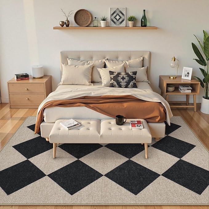 Collive Checkered Easy Jute Outdoor Area Rug 5x7, Washable Black Diamond Living Room Rugs Non Slip, Modern Farmhouse Indoor Outdoors Carpets for Dining Room Nursery Patio Bedroom Backyard Camping