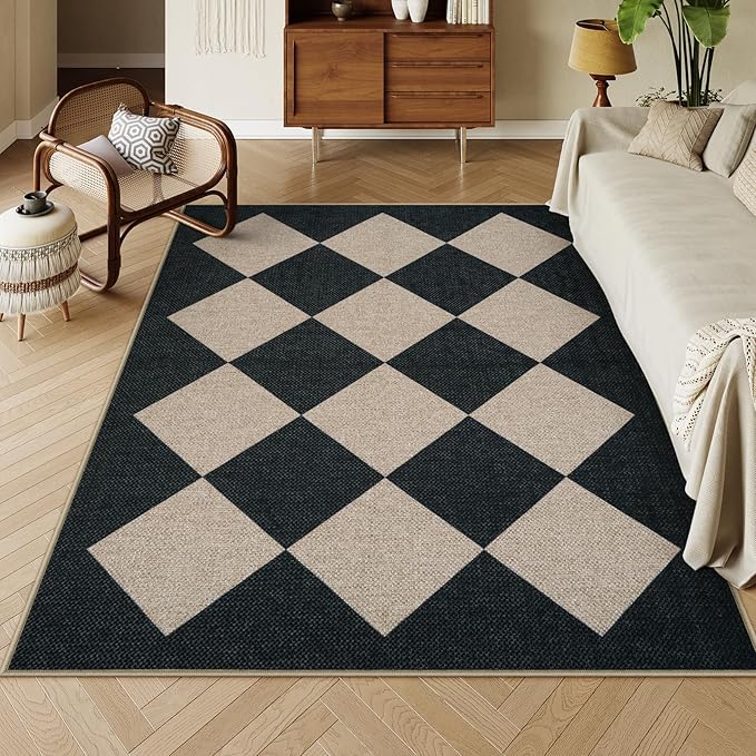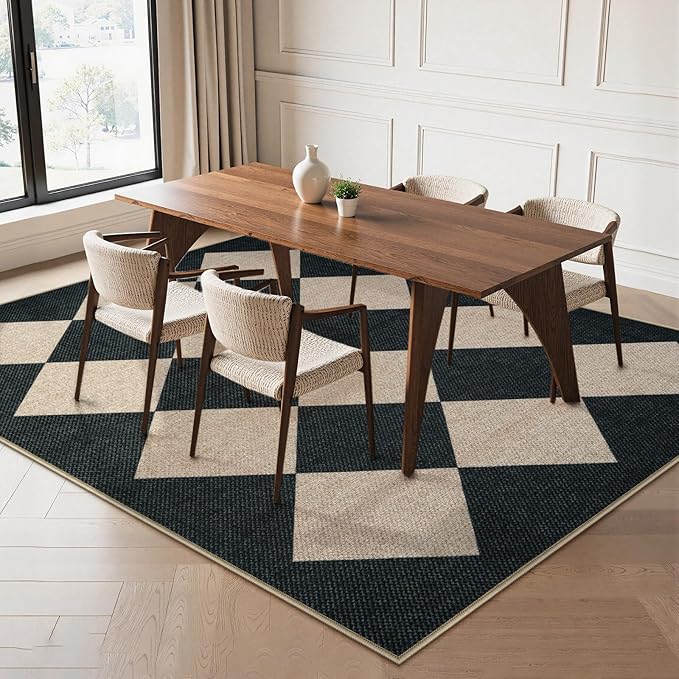 - Easy Jute Rug: Made from faux jute, this classic checkered rug complements farmhouse aesthetics while adding a contemporary touch. The minimalist line design can be matched with any style of home, ideal as living room area rugs or dining room rug