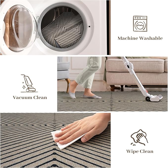 - Easy to Clean: Simply wipe with a damp cloth or use a vacuum for routine care. It can be put into the washing machine and washed with cold water. To extend the service life of the carpet, it is recommended to reduce the frequency of machine washing