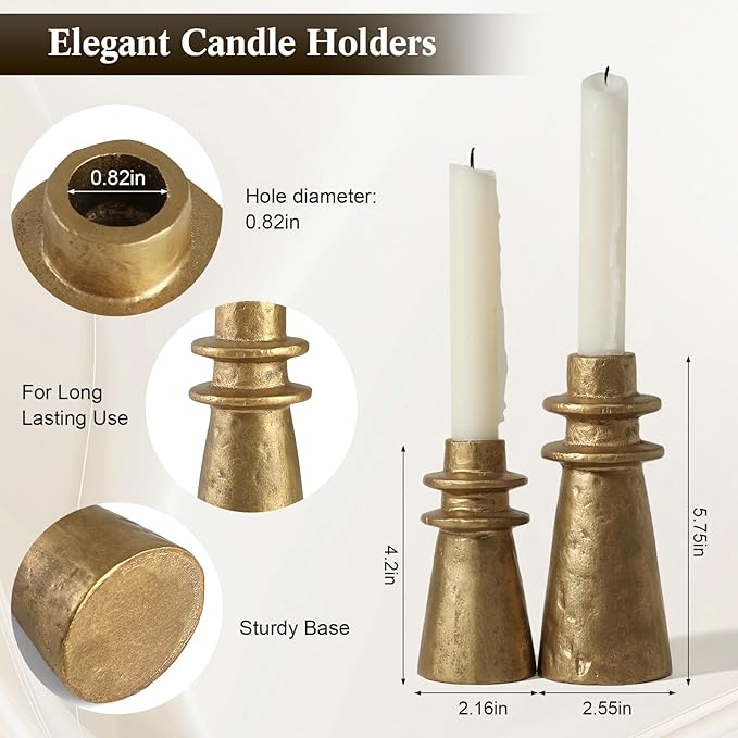 - Elegant Vintage Charm – Infuse rustic charm into your home with this set of antique brass cast iron candle holders. The vintage design, coupled with a warm metallic finish, adds timeless elegance to any room or event.