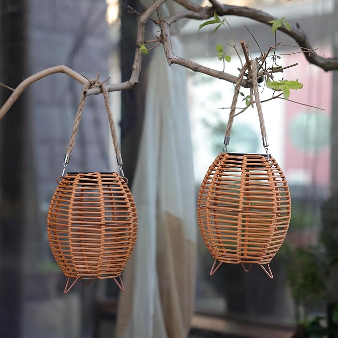 - NATURAL DESIGN: Handwoven rattan-style lantern casing creates beautiful shadow patterns while providing a warm, inviting glow