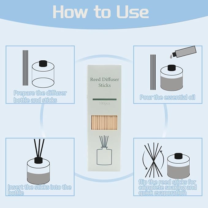 - 【Easy to Use】Diffuser Sticks Set: Simply insert the diffuser oil sticks into your favorite diffuser bottle with essential oils or fragrance oils. Replace as needed for continuous fragrance. Ideal for reed sticks for oil diffusers and diffuser sticks refill.
