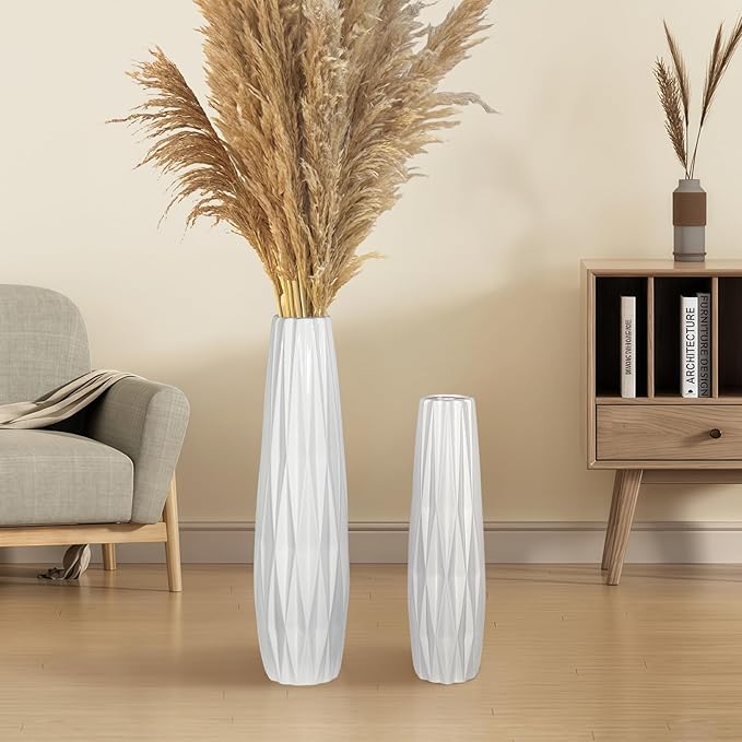 GDSZJLJ 15.7 Inch Tall White Ceramic Floor Vase, Big Standing Flower Vase with Glossy Glaze, Large White Vases for Flowers,Decorative Ceramic Vases for Living Room,Bedroom,Office,Entryway,Dining