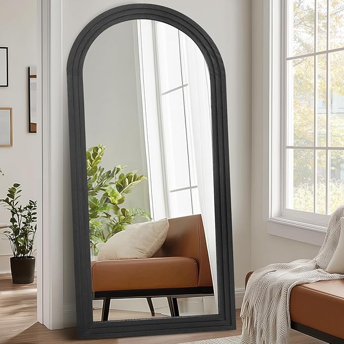 Arched Full Length Mirror 71"x32" - Rustic Black Solid Wood Wall Mirror, Oversized Leaning or Mounted Design for Bedroom, Entryway, Living Room Décor