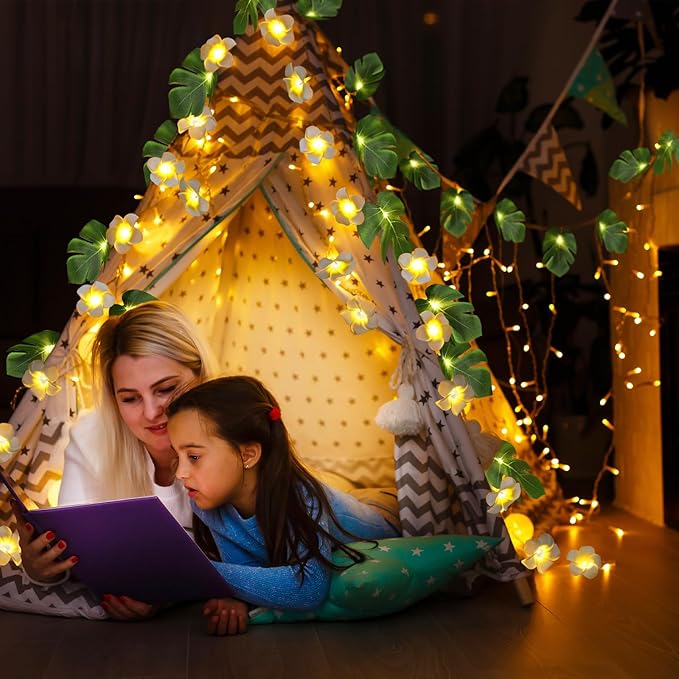 - Wide Application:Flower Monstera Fairy String Light suitable for Hawaiian tropical luau Jungle beach theme wedding party,easy to install on indoor stair banisters, mantel, bedroom walls, floors, ceilings and outdoor trees, lawn, and garden.