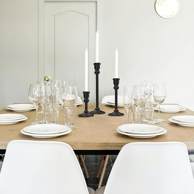 - 【Fits Taper Candles】-3 Piece Candle stand. Candle holder only, Candles not included. Base diameter 3.2" ; SIZE - S:3.2×5.2 inch, M:3.2 ×7.5 inch, L:3.2 ×10.2 inch. 2.2cm/0.87” open mouth ,Suitable for 3/4inch candles and led taper candles