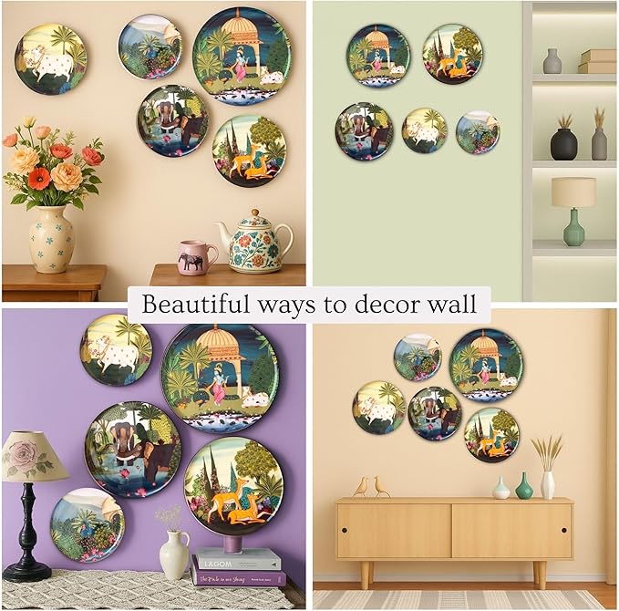 RITUALISTIC Dwarka Pichwai Wall Plates for home decoration & living room | Metal Wall décor | Gift items for unisex |wall art | wall showpiece| Home Décor Christmas Gift Items | Set of 5 plates