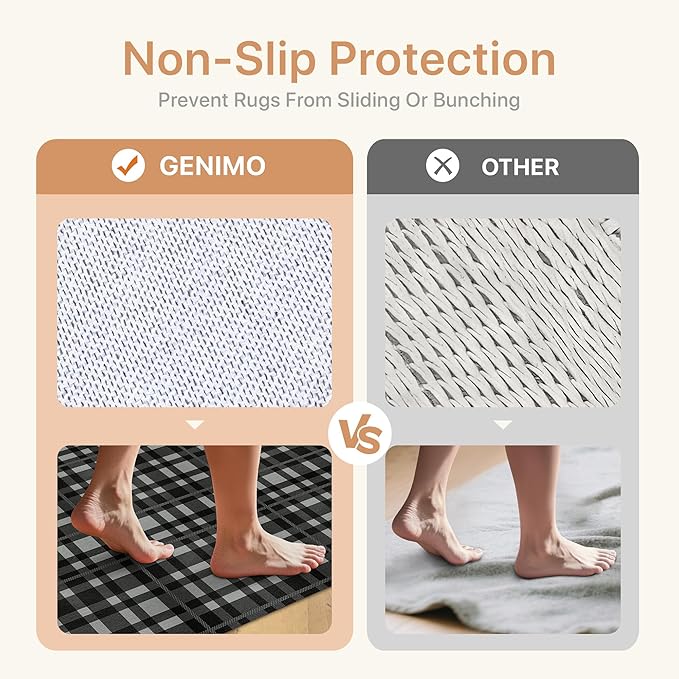 - Non-Slip Backing: Our washable rugs have a high-quality non-slip backing that secures floors from scratches and keeps the rug securely in place, avoiding any shifting or slipping. It serves as a comfortable, reliable and stable cushioning for frequently used areas such as the living room, dining room, kitchen, and hallways. Prolonged placement will not discolor your flooring.