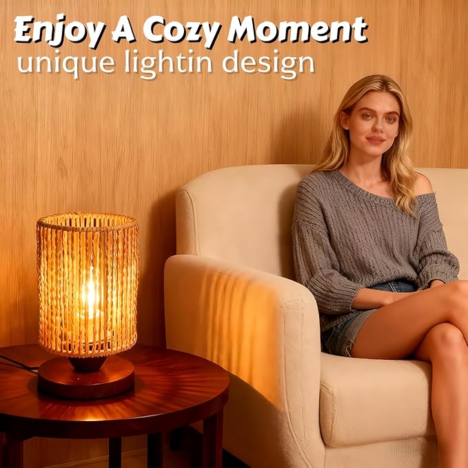 - EASY ASSEMBLY&PERFECT GIFT:Assemble the rattan beside lamp in just minutes,no tools required,the lightweight wooden base is easy to move and adjust without damaging table surfaces,This cute bamboo table lamp is also a warm and fashionable gift for families,mom,wife,daughter,friends,or your colleague on birthdays,Christmas,Mother's Day,Valentine's Day,and Thanksgiving!