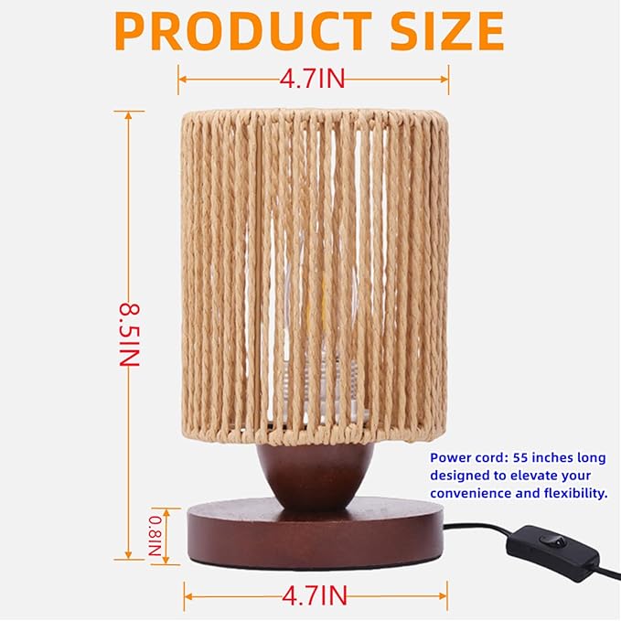 - LED LIGHT BULB INCLUDED:For saving you more time on finding a correct bulb,we particularly pair with an energy-saving LED bulbs,this small wicker wooden nightstand Lamp lamp not only provides stable and bright lighting but also helps reduce energy consumption and protect your eyes,making it ideal for bedroom Living room lighting.