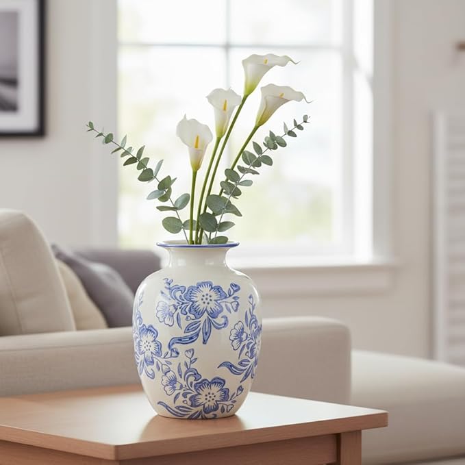 - Classic Blue and White Styling: Standing at 7 inches, this blue vase evokes the timeless elegance of Chinoiserie and Delftware. It serves as a quintessential piece for coastal homes, kitchen islands, and traditional dining rooms
