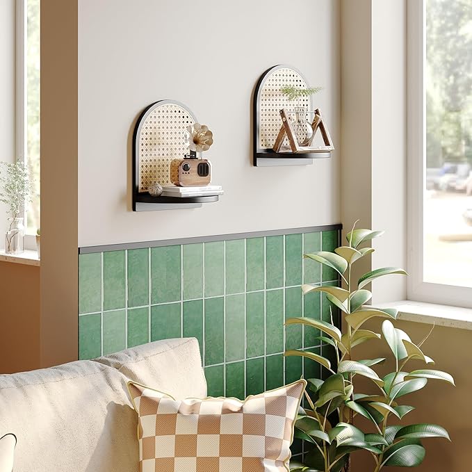 - 【Rattan Wall Shelf】 7” small shelf is bohemian in style, it has a varnished finish for a smooth feel and is decorated with wicker. Whether it's for a modern home or vintage decor, it easily blends in as a striking accent piece