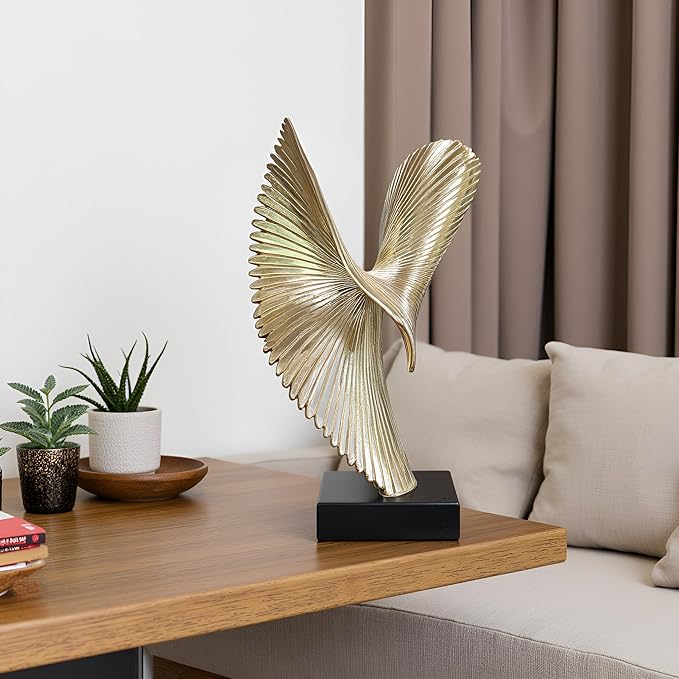 LAIKEARTS Modern Abstract Eagle Decorative Sculpture, Dining Living Room Desk Decor,Geometric Home Decor Statues,Shelf Top Decor Aesthetics, Coffee Tables or Office Shelves(Golden)