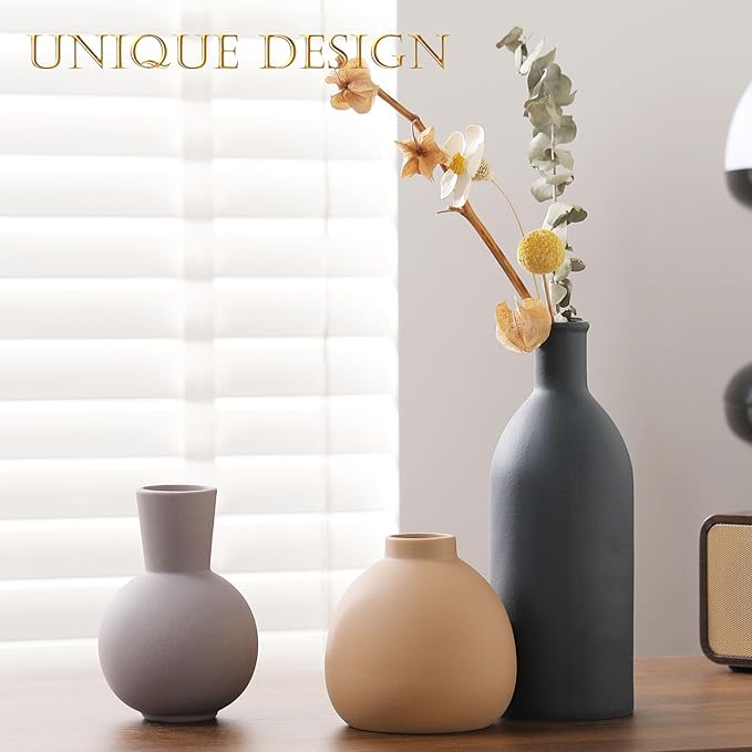 Joeabor Ceramic Vase Set of 3 - Handcrafted Ceramic Vases for Home Decor & Shelf - Modern Farmhouse Decor for Kitchen, Office, Bedroom & Living Room Decorative Objects for Mantel, Table Centerpieces