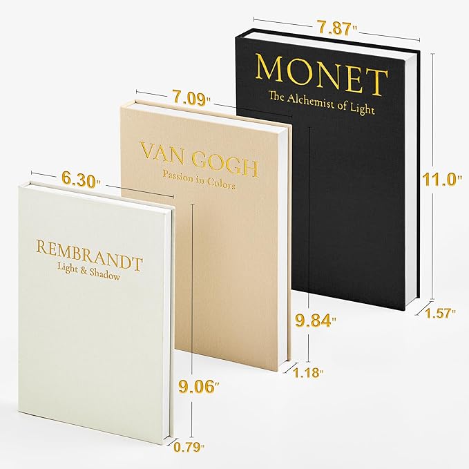- Modern Aesthetic Books For Decor: These elegant linen book sets are inspired by famous artists, perfect for elevating your space as coffee table books, entryway decor, bookshelf accents, or mantel decorations. The neutral hues and elegant design bring warmth and visual interest to your home