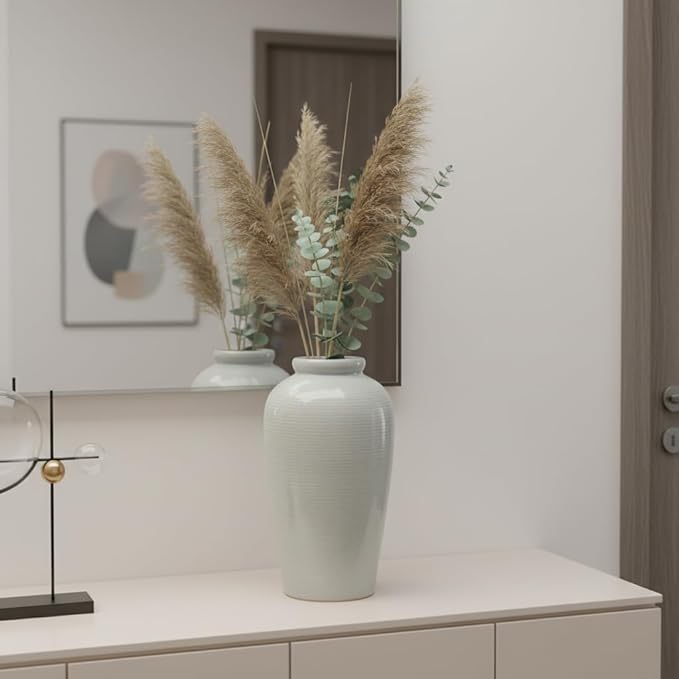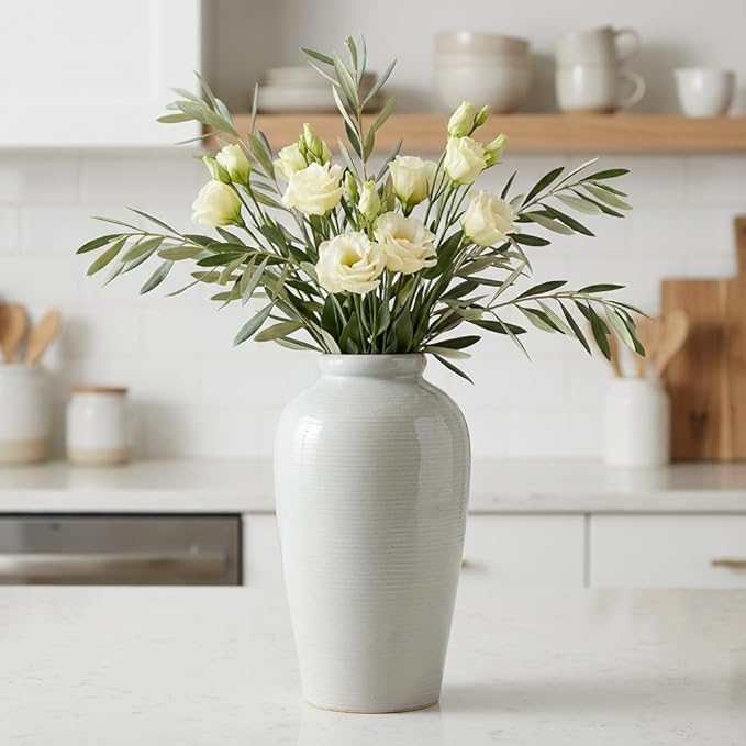 Wancetang Large Modern Farmhouse Vase for Centerpieces, 11 Inch Tall Ceramic Vase - Glazed Textured Pottery Vases Home Decor, Side Table, Kitchen, Living Room Decor, Entryway, Mantel Decorations