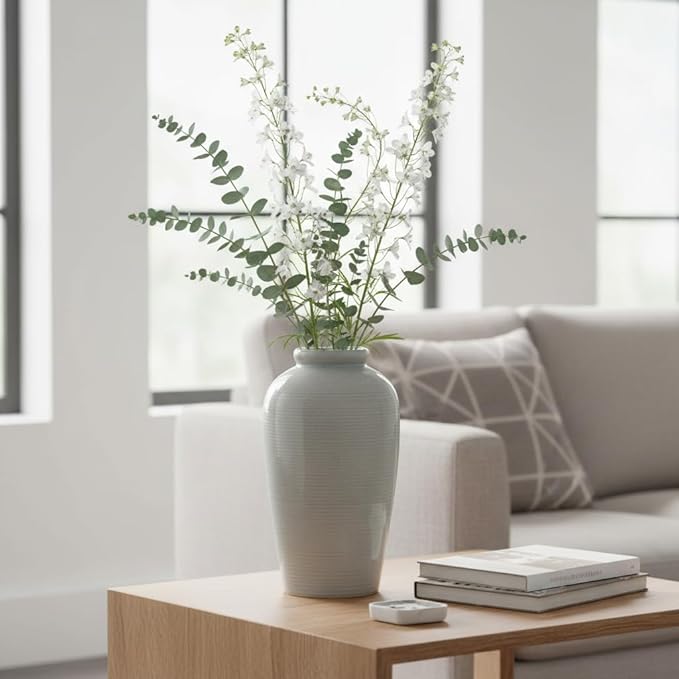 - Ideal for Pampas & Greenery: At 11 inches tall, this grey vase supports tall stems with ease. Use it for structured olive branches or loose pampas grass, adding a subtle gray neutrality that complements any colorful arrangement